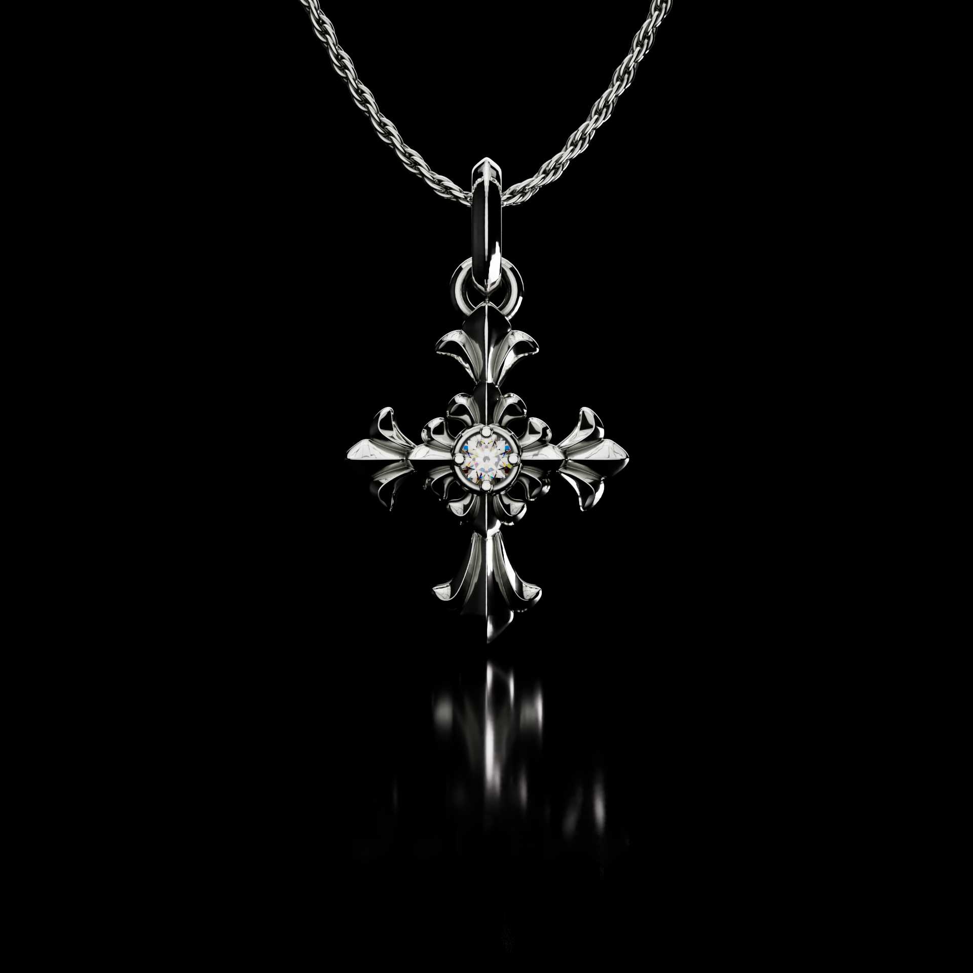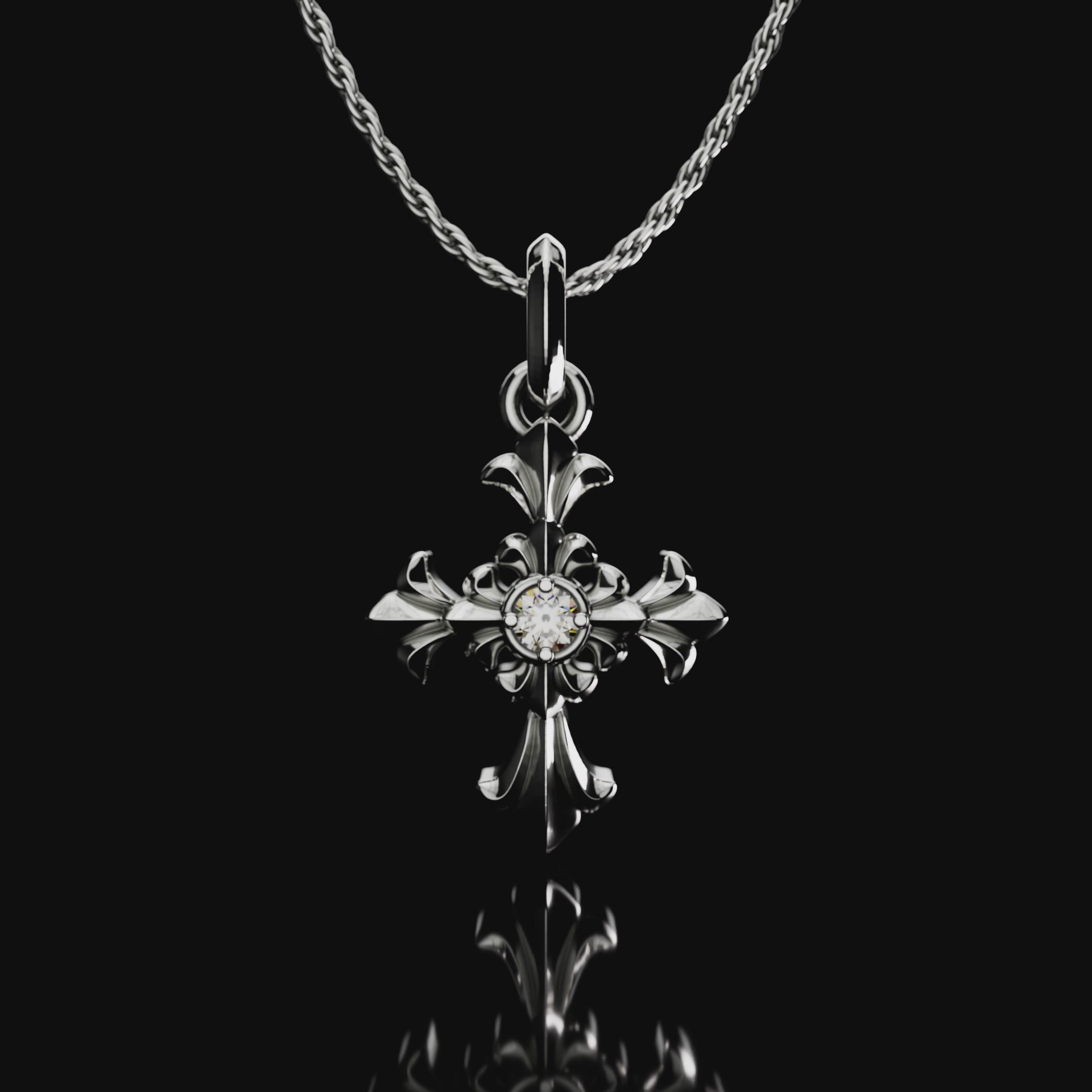 Crafted from solid sterling silver, the Courtyard Cross pendant features your choice of a brilliant moissanite centerpiece, evoking elegance and timeless beauty. Each pendant comes with a chain for effortless wear.